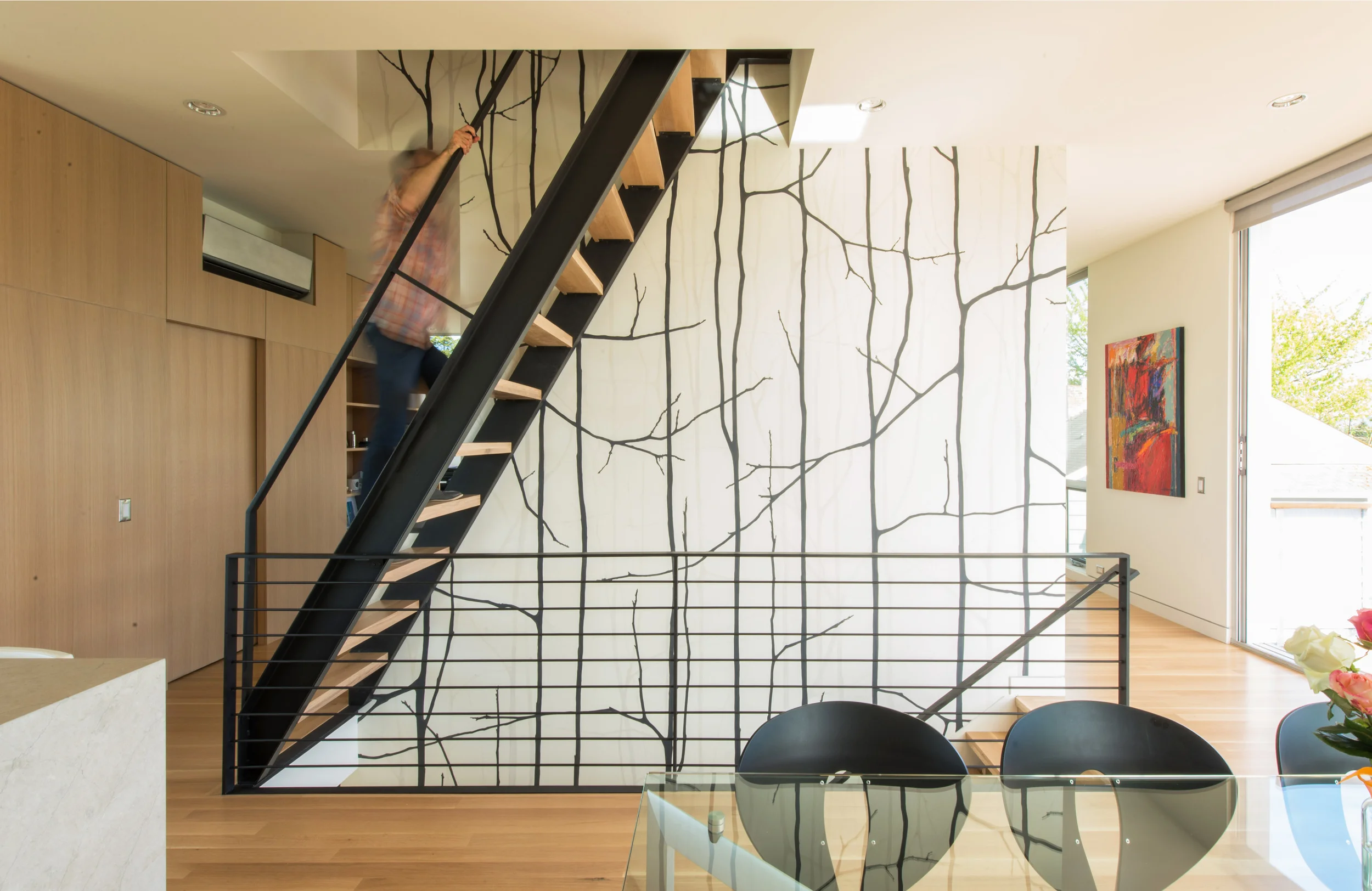 This photo: stairs leading to the rooftop deck and garden. My painting continued up to the top of the stairs.Read further for the WHOLE story.Photo by BUILD LLC